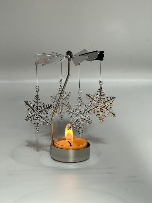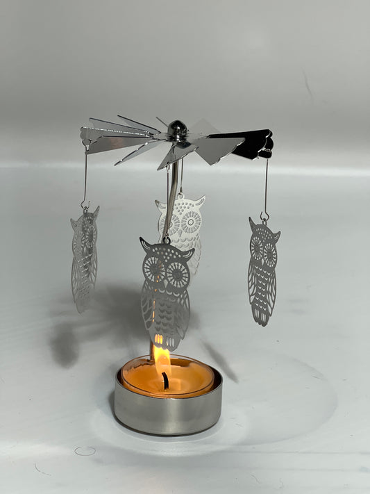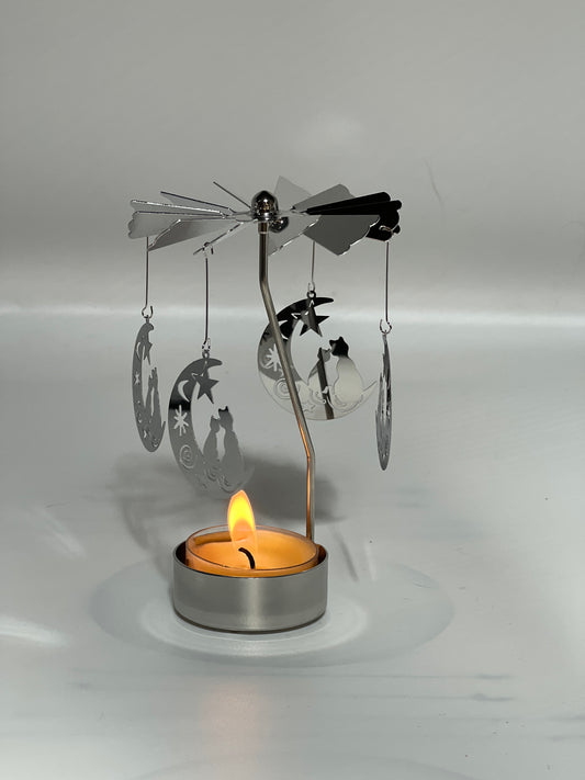 Tea Light Candle Carousel - Cats on the Moon, Silver